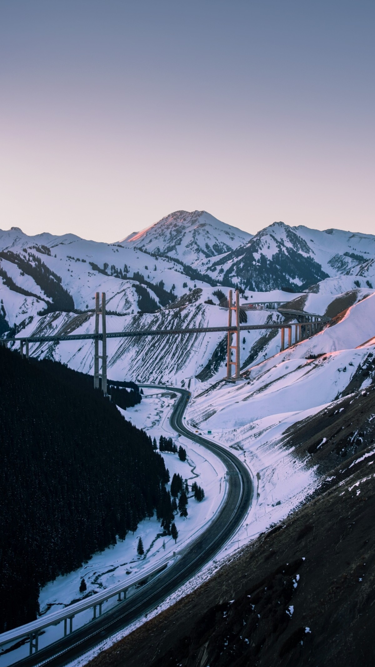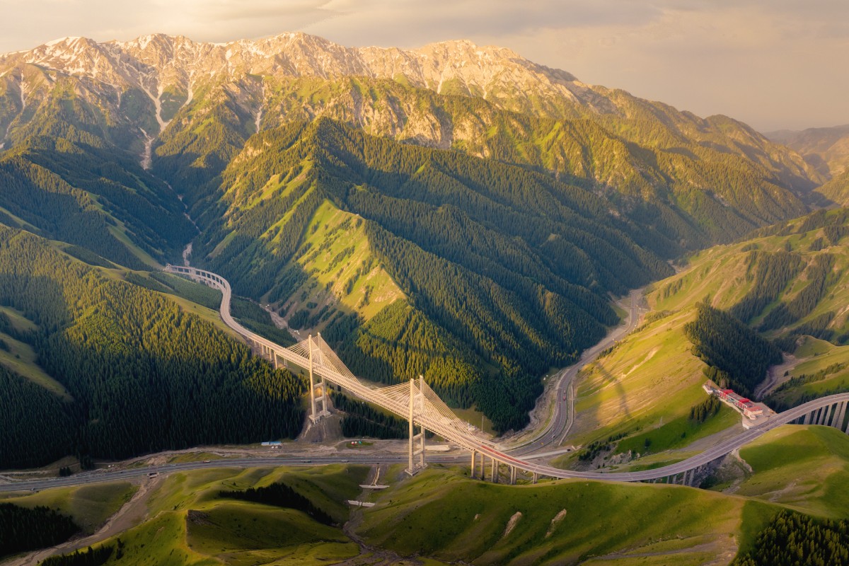 新疆果子沟大桥堪称自然与工程的完美邂逅,它蜿蜒穿行于伊犁的崇山峻岭间,银灰色的桥身在墨绿色云杉林与远处皑皑雪山的映衬下,优雅而飘逸。行驶其上,移步换景,一侧是巍峨耸立的雪峰,一侧是深邃葱郁的林海,每一个弯道都带来全新的视觉震撼,仿佛驶入一幅流动的风光大片,将西北大地的雄浑与灵秀展现得淋漓尽致。