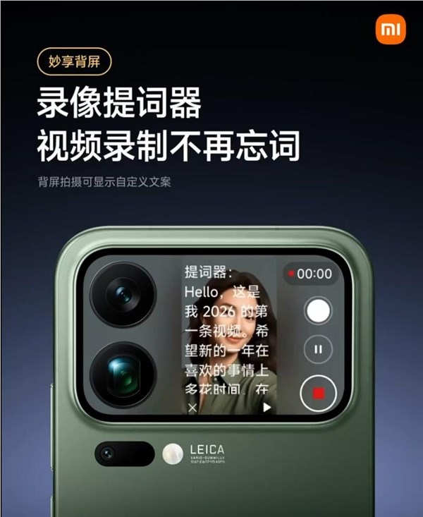 站长之家(ChinaZ.com)1月9日 消息:小米集团合伙人卢伟冰1月8日宣布长红配资长红配资,小米17Pro系列手机背屏新增“录像提词器”功能,用户通过后置副屏录制视频时可同步显示自定义滚动文案,并支持调节文字滚动速度。